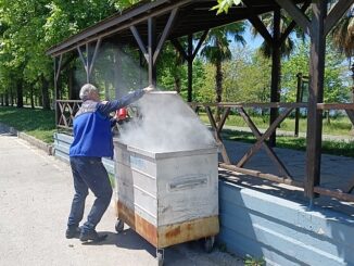 Büyükşehir Belediyesi Zabıta ekipleri, çöp konteynerinde çıkan yangını büyümeden önledi