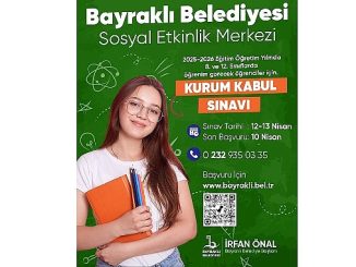 Bayraklı Belediyesi Sosyal Etkinlik Merkezi’nden kurum kabul sınavı Eğitim alanındaki yatırımları ve başarılarıyla fark yaratan Bayraklı Belediyesi, Sosyal Etkinlik Merkezi’nde eğitim görecek öğrencilere yönelik kurum kabul sınavı yapacak.
