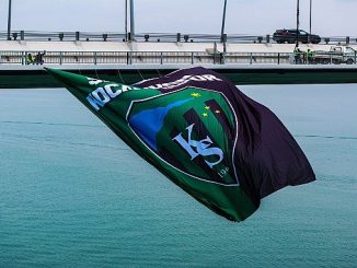 Kocaelispor’un şampiyonluk bayrağı Osmangazi Köprüsü’ne asıldı.