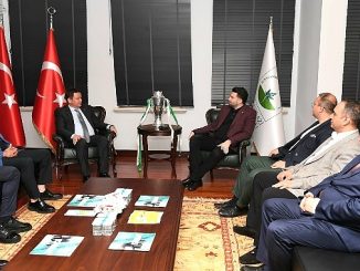 Bursaspor Başkanı Enes Çelik ve yönetim kurulu üyeleri şampiyonluk kupasıyla Osmangazi Belediye Başkanı Erkan Aydın’ı ziyaret etti.
