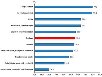Lisans mezunlarının kayıtlı istihdam oranı 2023 yılında %75,6 iken, bu oran 2024 yılında %75,0 olarak gerçekleşti.