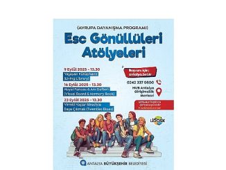 Avrupa Dayanışma Programı (ESC) kapsamında; Antalya Büyükşehir Belediyesi ve Lykia İzcilik ve Doğaseverler Kültür Derneği (LIDOSK) ortaklığında uluslararası gönüllüler için HUB Antalya Girişimcilik Merkezi’nde ‘Esc Gönüllüleri Atölyesi’ düzenlenecek.