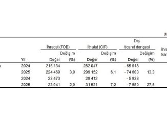 Ekim ayında genel ticaret sistemine göre ihracat %2,0, ithalat %7,2 arttı Türkiye İstatistik Kurumu ile Ticaret Bakanlığı iş birliğiyle genel ticaret sistemi kapsamında üretilen geçici dış ticaret verilerine göre; ihracat 2025 yılı Ekim ayında, bir önceki yılın aynı ayına göre %2,0 artarak 23 milyar 941 milyon dolar, ithalat %7,2 artarak 31 milyar 521 milyon dolar olarak gerçekleşti.