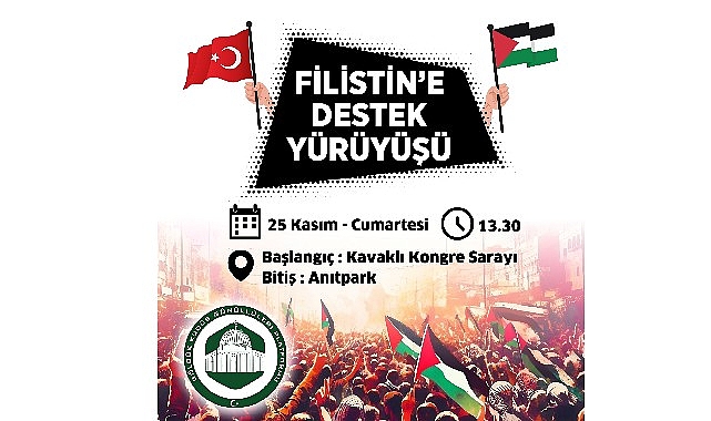 zulmüne karşı Filistin’e destek yürüyüşü düzenleyecek. Kavaklı Kongre Sarayı önünden, saat 13.30’da