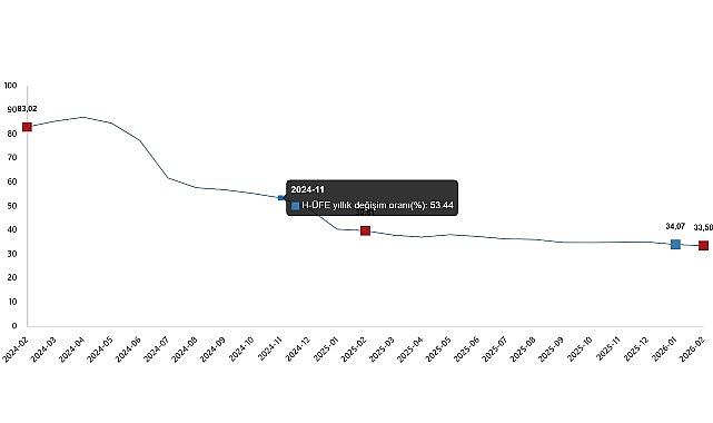 H-ÜFE 2026 yılı Şubat ayında bir önceki aya göre %2,10 artış, bir önceki yılın Aralık ayına göre %10,01 artış, bir önceki yılın aynı ayına göre %33,58 artış ve on iki aylık ortalamalara göre %35,77 artış gösterdi.
