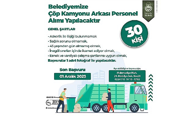 | İnegöl Belediyesi 30 Personel Alacak |
