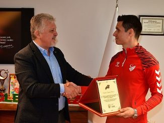 Düzce’de oynanan futbol müsabakasında tribünde rahatsızlanan taraftar için maçı durdurup sağlık ekiplerini yönlendiren ve bu davranışıyla takdir toplayan bölgemiz hakemlerinden Ceyhun Elmas, Lüleburgaz Belediye Başkanı Dr.
