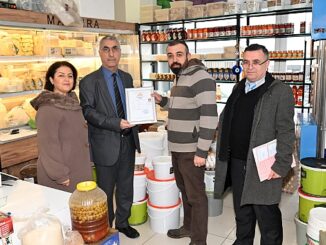 Karabağlar Belediyesi, ruhsat başvurusu yapan esnafın onaylanmış ruhsatlarını çerçeveli bir biçimde işyerlerine giderek elden teslim etmeye başladı.