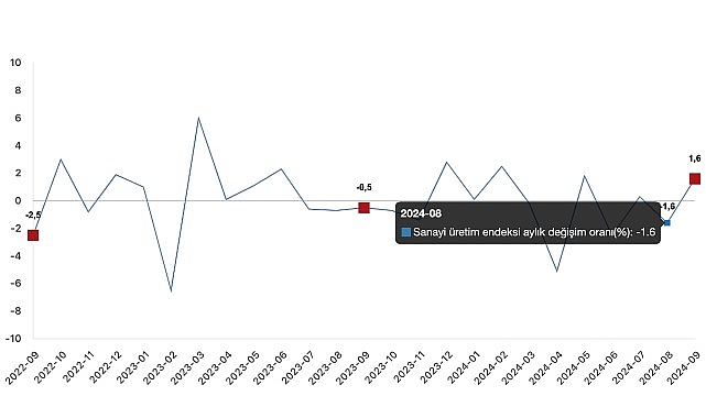 Sanayi üretimi aylık %1,6 arttı