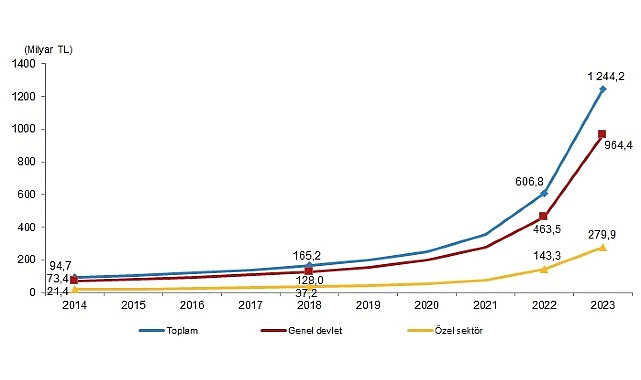 Cari sağlık harcaması 2023 yılında bir önceki yıla göre %104,1 artarak 1 trilyon 134 milyar 894 milyon TL’ye yükseldi. Sağlık harcamaları kapsamındaki yatırımlar %114,9 artarak 109 milyar 343 milyon TL’ye ulaştı.